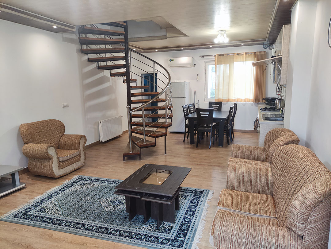 هر ویلا به مساحت حدود یکصد متر مربع بصورت دوبلکس که همکف شامل پذیرایی و آشپزخانه تجهیز شده برای 6 نفر، سرویس بهداشتی و در طبقه فوقانی دو اتاق خواب، تراس و حمام می باشد. ویلا دارای یخچال، یک دستگاه تلویزیون، یک دستگاه جارو برقی، مبل راحتی با میز، فرش، میز نهارخوری 6 نفره، گاز رومیزی، دو دستگاه کولر منصوبه، پکیج شوفاژ دیواری و پره و هود آشپزخانه می باشد.